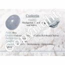 Der Coelestin wird dem fünften Chakra (Muladhara) zugeordnet, hierbei handelt es sich um das Kehlkopf- und Hals Chakra welches sich im Kehlkopf befindet.