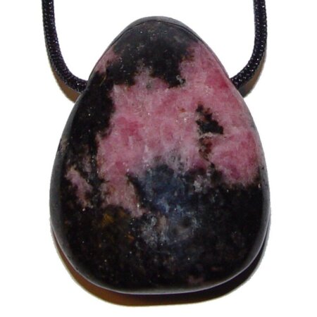 Rhodonit – mit Mangan Trommelstein Tropfen gebohrt (2,5 mm) ca. 30 x 20 mm Anhänger Edelstein