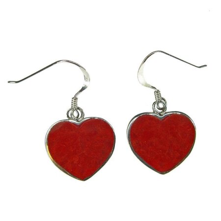 Schaumkoralle rot Ohrhänger Herz mit 925er Silber Größe: ca. 15 mm